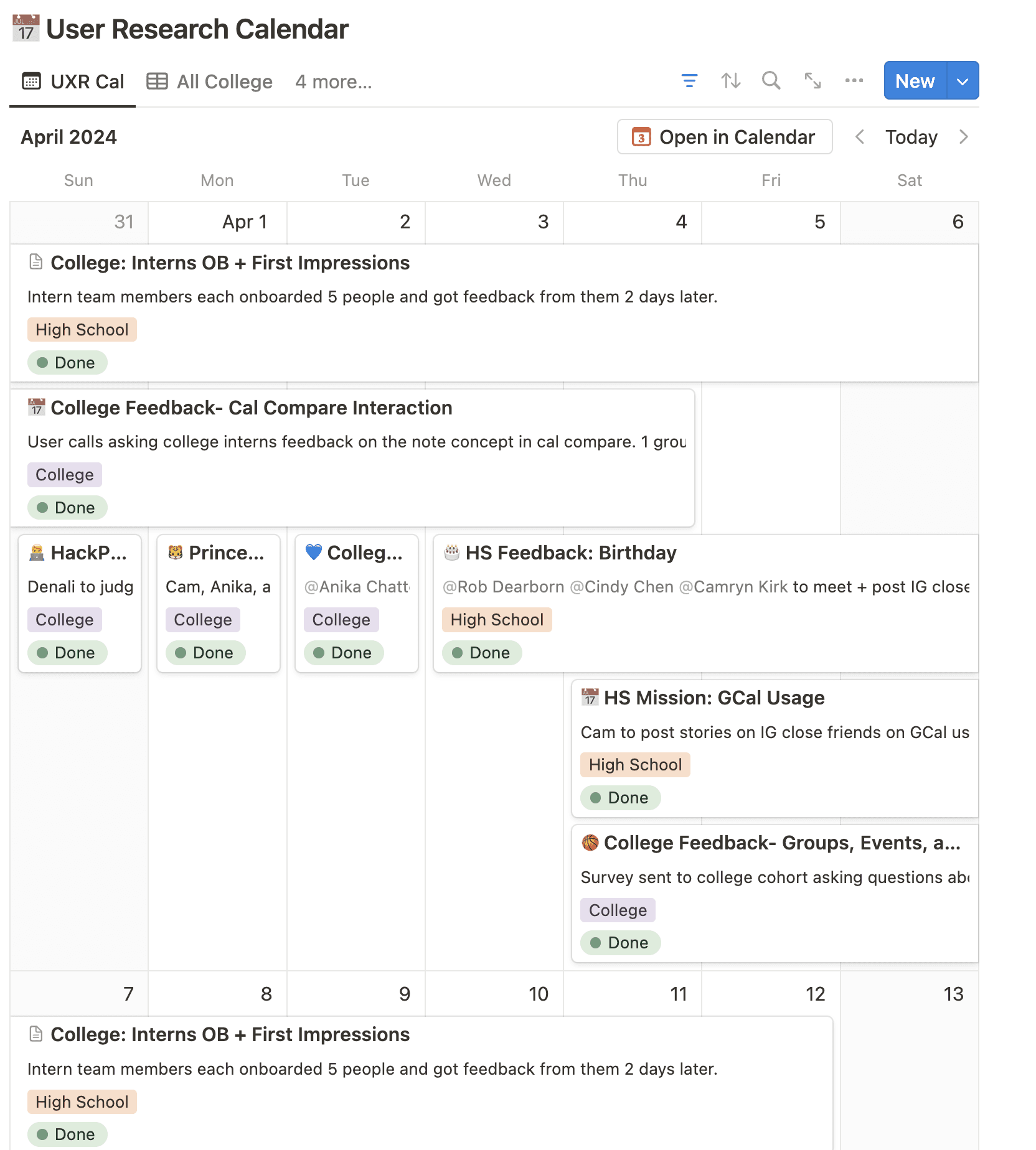 Initially, the direct experience of students at Staples drove the development of Saturn. An intimate understanding of students’ needs at a singular high school with a particular set of conditions meant that user research was naturally integrated into the product development process. As time went on and the product has scaled and evolved, the distance between user problems to product development has grown, prompting a more focused effort on understanding how users experience the product and addressing their needs. A continued focus on user research ensures that as the product changes, it continues to resonate with users and solves the right problems. Maintaining this close connection with our target audience has become increasingly critical, especially since the team is longer in high school themselves.